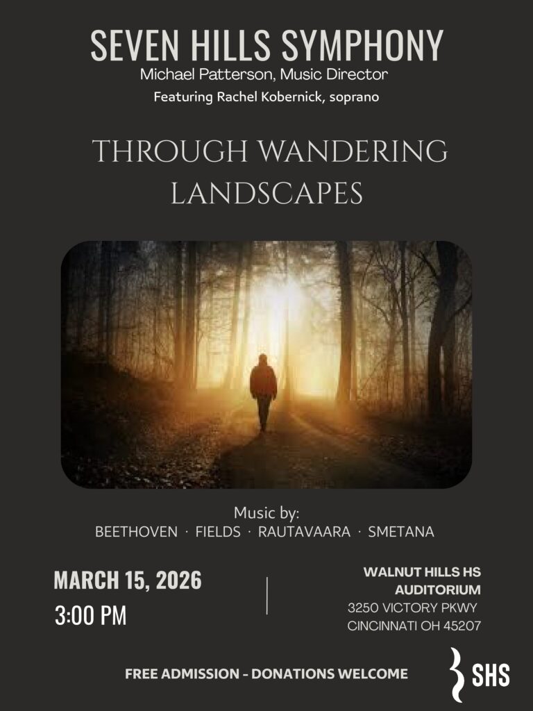 Formerly named Seven Hills Sinfonietta, the Seven Hills Symphony was founded in 1974 and is now recognized as a leading community orchestra in Cincinnati, Ohio. Under the baton of Michael Patterson, the orchestra holds concerts that energize, entertain, and educate the public. The orchestra is composed of well-trained, non-professional musicians that perform a variety of music – everything from classical masterpieces to jazz, rock, and world music.